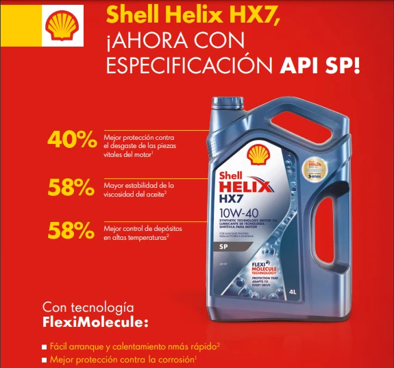 Shell Helix HX7 SP ayuda a mantener los motores de gasolina limpios y funcionando de manera eficiente.